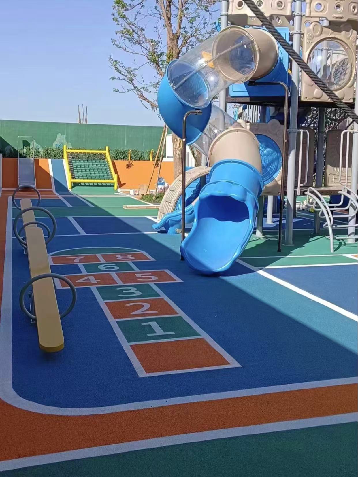同时,EPDM跑道的防滑性能也十分优异。无论是在潮湿的雨天,还是在运动后孩子们出汗的情况下,跑道表面都能提供足够的摩擦力,防止孩子们滑倒。这对于保障孩子们在运动过程中的安全起到了至关重要的作用,让他们可以放心地在跑道上尽情奔跑、追逐。