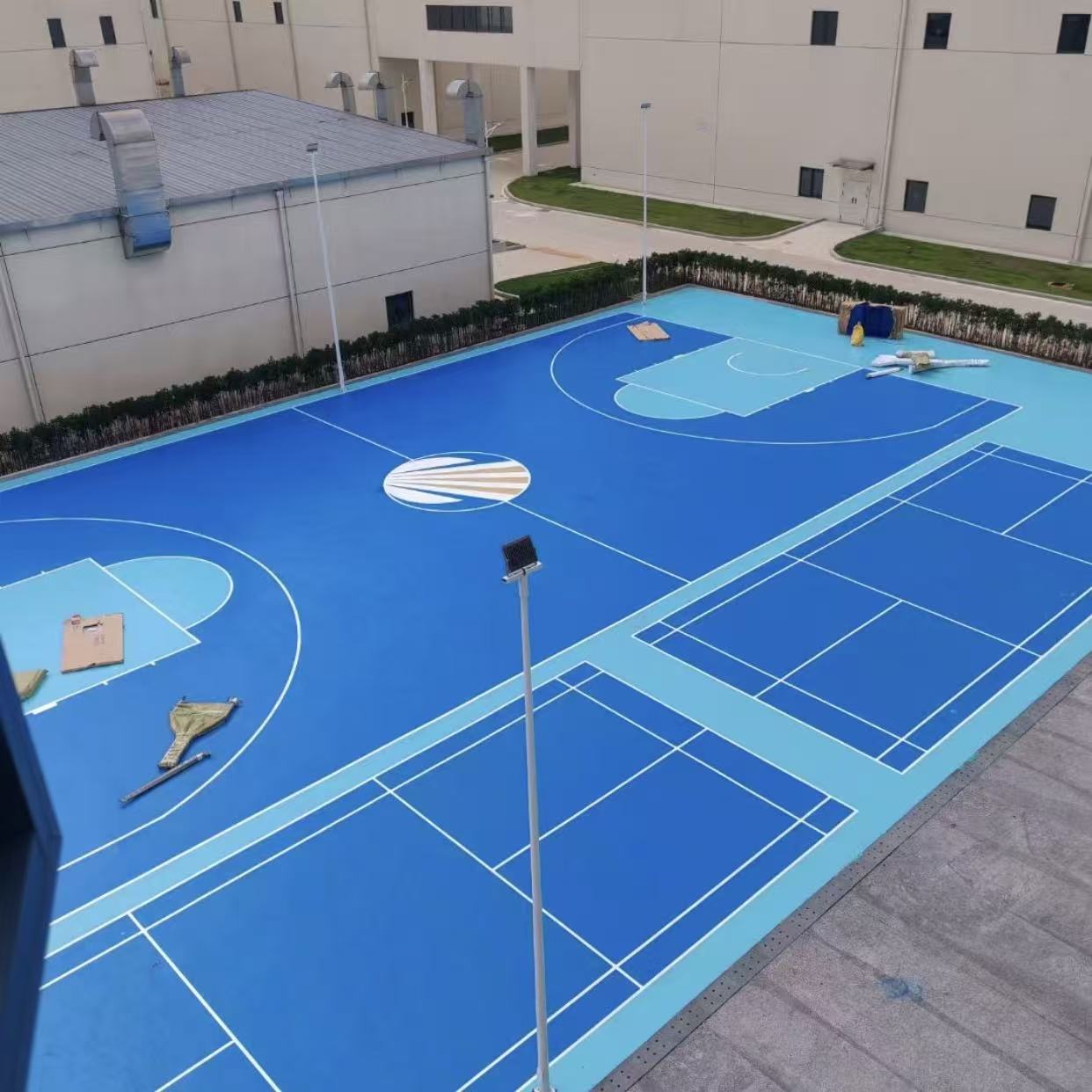 硅PU球场的“双层结构”由弹性层和加强层组成。这一设计并非简单的叠加,而是经过精心考量和科学配比的。每一层都有其独特的功能,共同为球场的高性能表现奠定了基础。