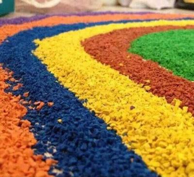 EPDM 在跑道中主要以彩色胶粒形态存在,跑道通常为双层结构:底层采用黑色橡胶颗粒提供基础弹性与支撑,面层铺设 6-8mm EPDM 彩色胶粒,搭配专用聚氨酯胶水粘合,形成稳定、透气的运动面层。这种结构兼顾弹性、耐磨与排水性,是幼儿园、中小学操场、社区运动场的主流选择。