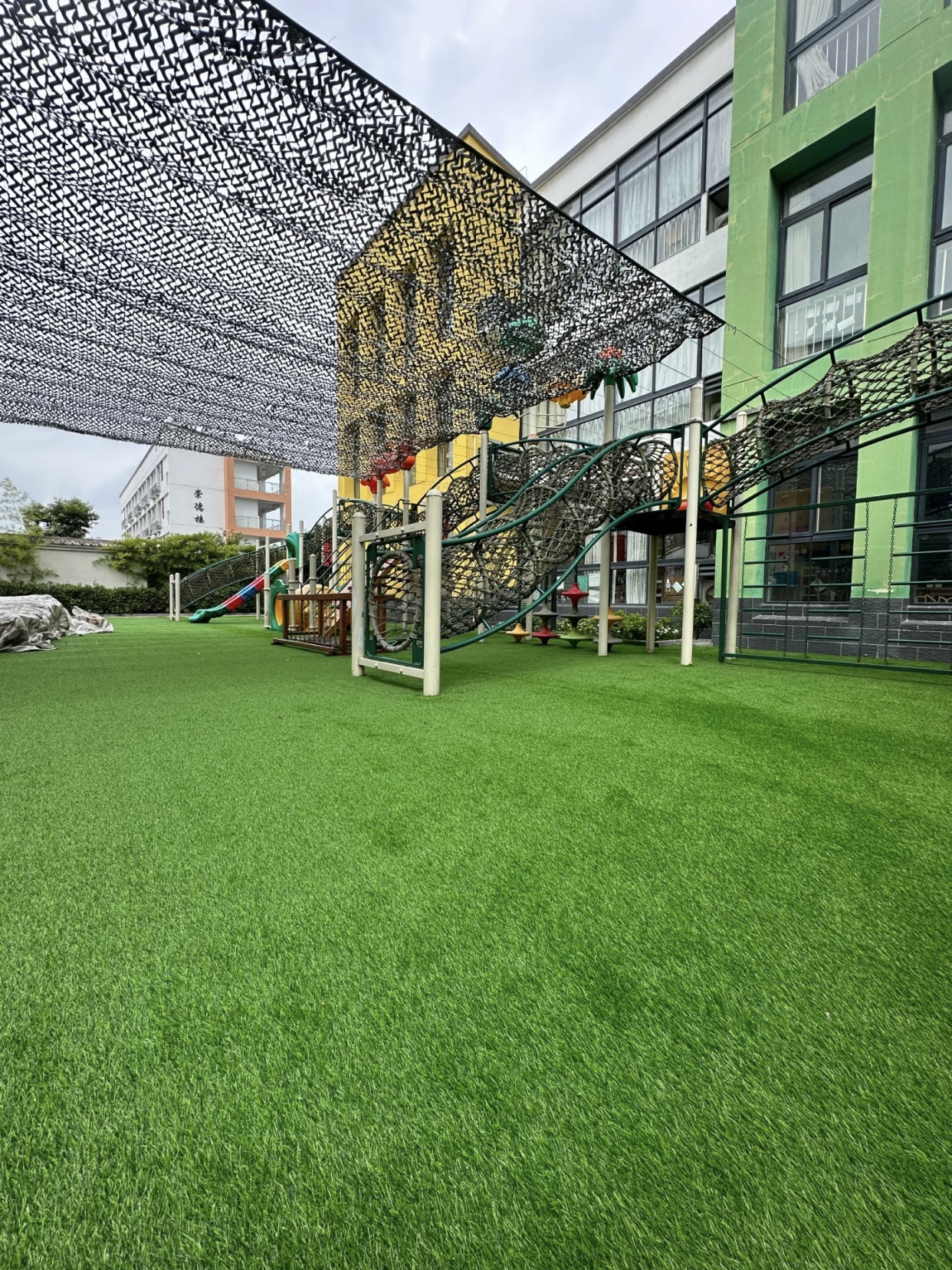 在雨天,天然草坪往往因为积水问题而无法正常使用。而人造草坪强大的透水性可以让雨水迅速排走,即使在大雨倾盆的情况下,也能在短时间内恢复使用。这对于一些赛事频繁的运动场地来说尤为重要,可以大大提高场地的利用率。